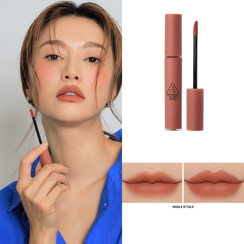 3CE Velvet Lip Tint 4g with a sleek, velvety finish comes in glamorous shades ranging from neutrals and muted pinks to bright red and bold tones. A velvety matte texture that amplifies the subtle, rich MLBB shade, completing an edgy lip look. Velvet lip tint incorporates an oil-packed formula specially made to deliver a vivid and velvety matte texture. When this tint is applied, the lips are first encased with a layer of oil upon which pigments gently melt, resulting in a dewy sensation with a matte finish. Oil ingredients may separate during use. This is a natural process and does not affect the formula or texture.