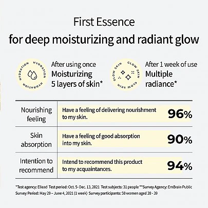 The essence has a watery texture that adheres well to the skin and is non-sticky.