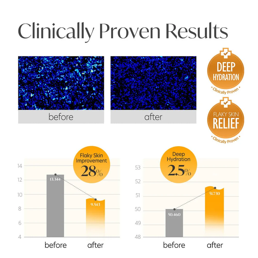 PROVEN RESULTS — Clinically proven results for deep hydration, instant glow, and relief from flaky skin. This formula smooths out your skin texture, giving you a fresh, healthy look you’ll love.