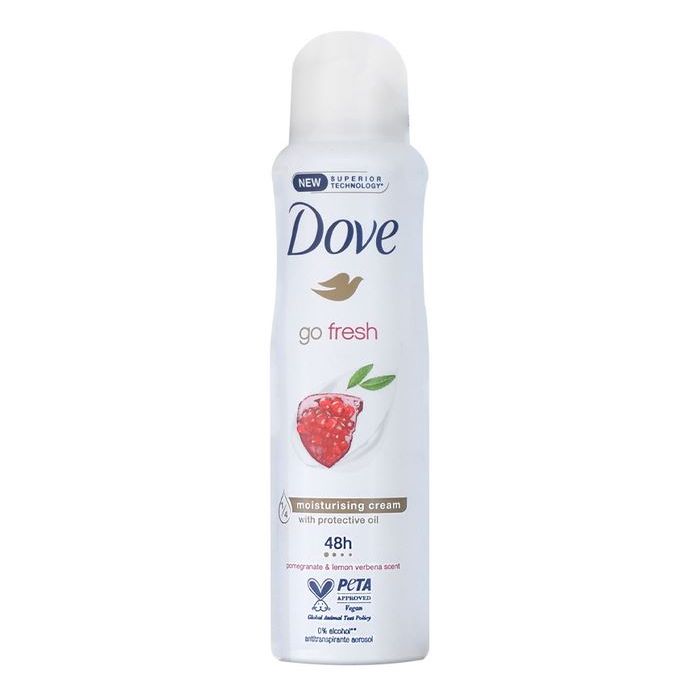 Protect your underarms for 48 hours with superior care using Dove Pomegranate & Lemon Verbena Antiperspirant Spray.