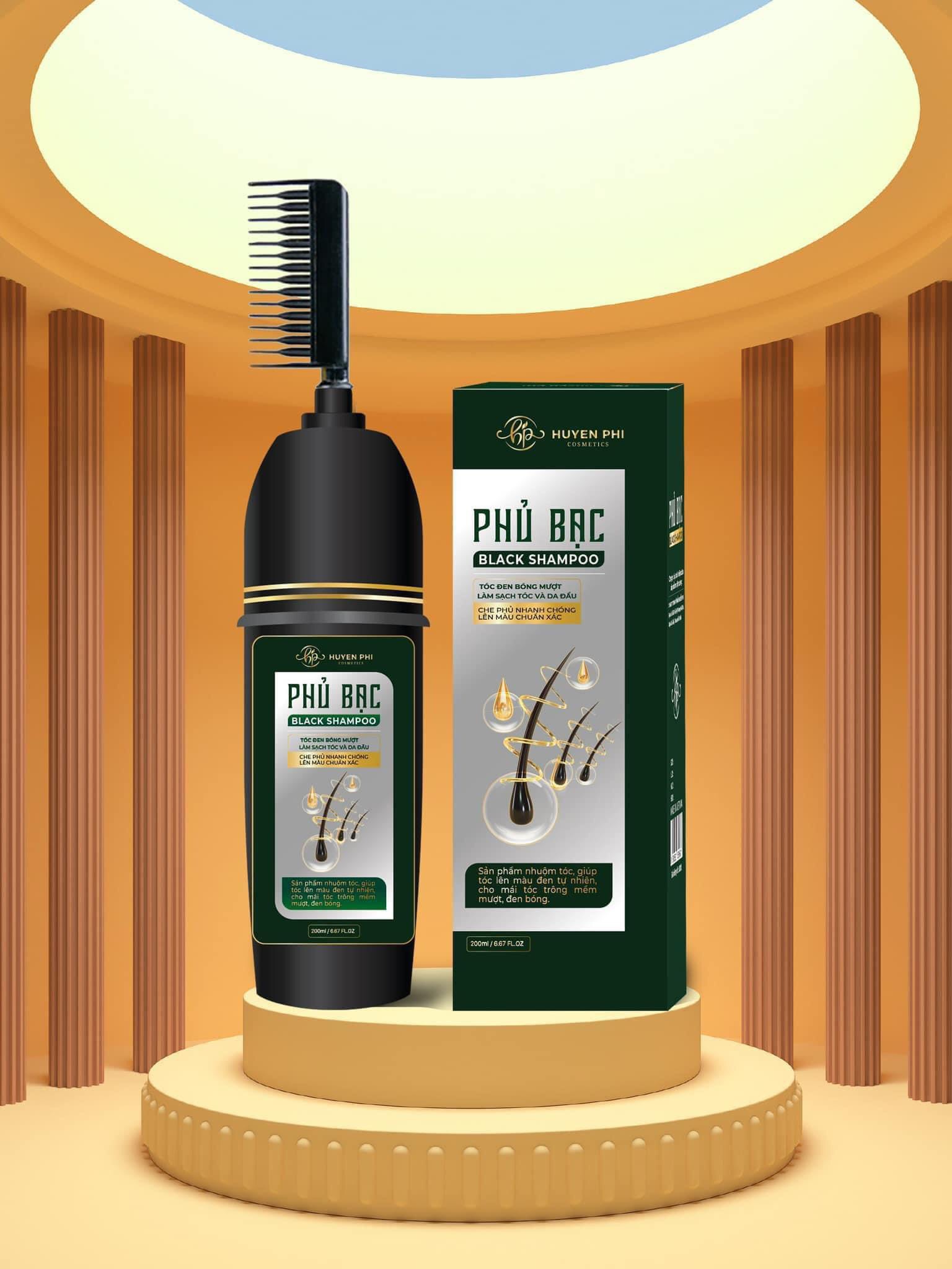 Huyền Phi Black Shampoo with special formulation, ammonia-free, paraben-free, helps to cover gray hair quickly