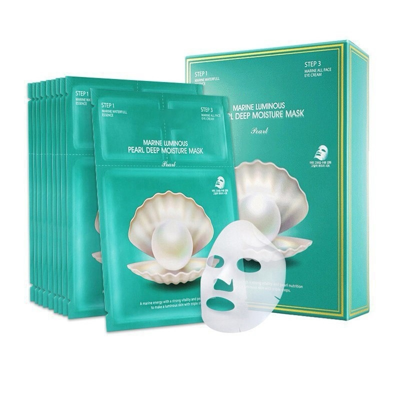3-Step Brightening Care:Brightening & Moisturizing Care for firmer and clear skin. Made with deep-sea water including marine energy and pearl extracts for brighter skin tone. The natural cellulose mask sheet is very light and easy to lay on the face.