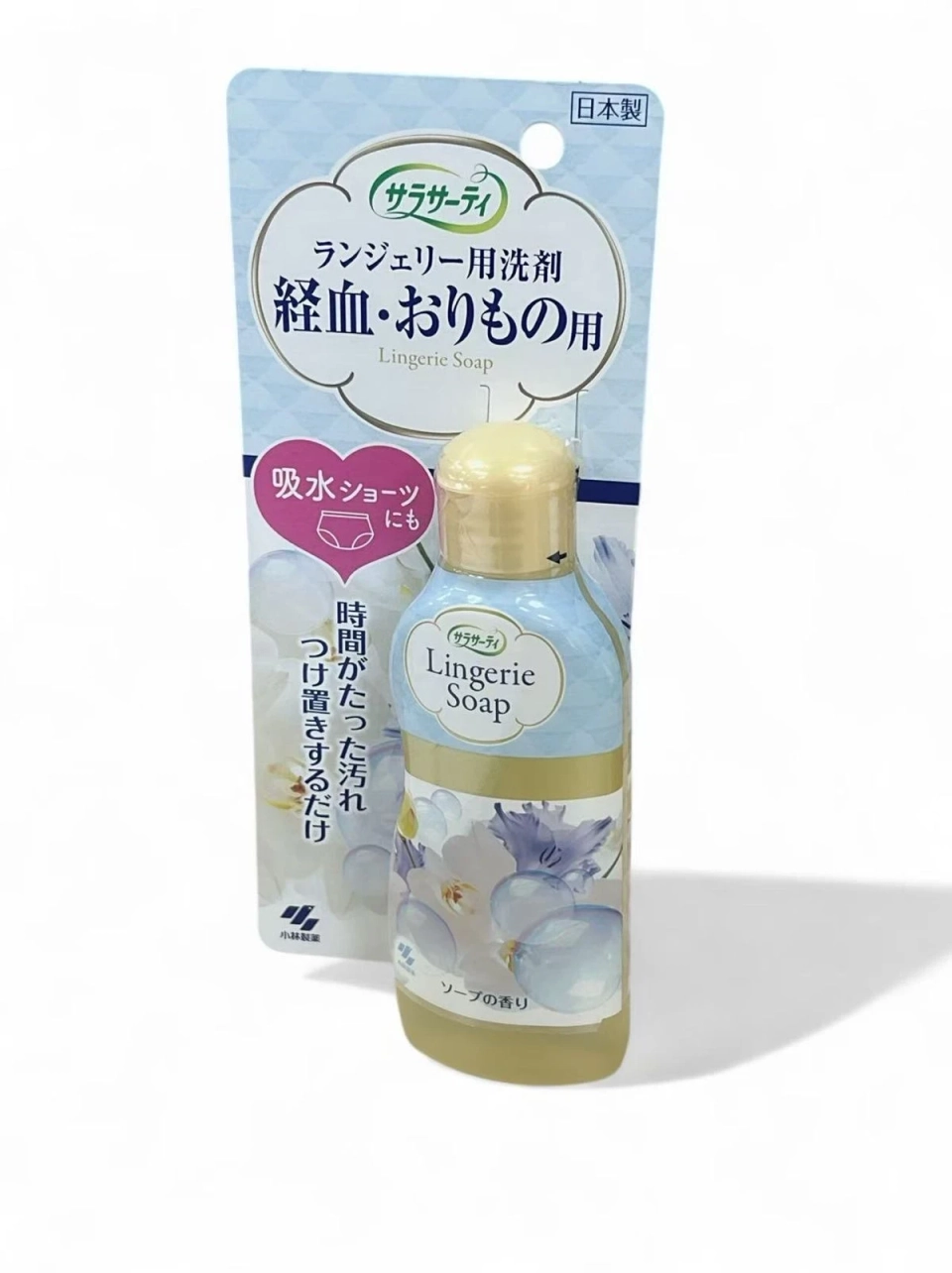 Feeling annoyed by the blood stains on lingerie during period? The Lingerie Soap saves your time and energy.As it cleans by soaking, it won’t damage your underwear.In only 20 minutes, you can thoroughly remove the period stains on lingerie. Also, blood stains on clothing other than lingerie which are caused by incised or stab wound can be cleaned.