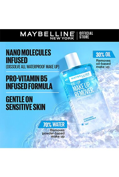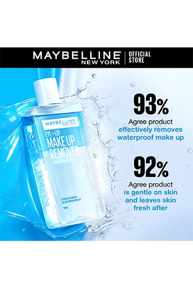 Maybelline New York Eye + Lip Makeup Remover 150ml fragrance-free, moisturising formula gently removes waterproof mascara and eye makeup.